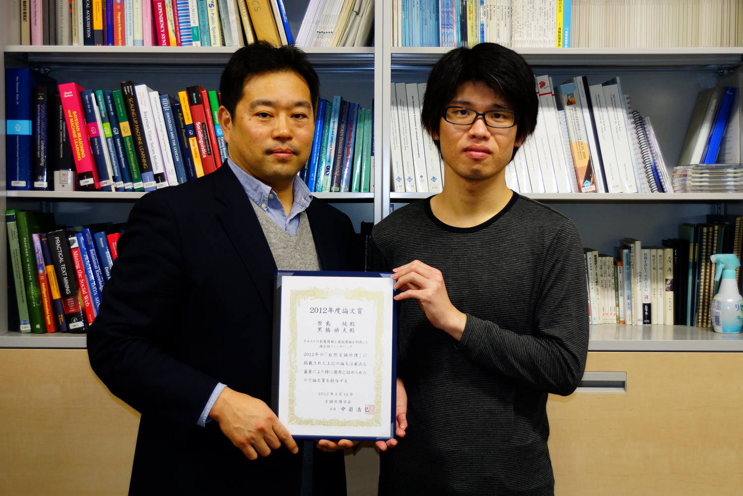 Vol.20, No.3, pp. 461-484.このたびは2013年度の論文賞という素晴らしい賞をいただき大変光栄に思います.示唆に富む有益なコメントを下さった編集委員会の皆様,査読者の皆様には心よりお礼申し上げます.本論文は「災害情報と言語処理」特集号に採録いただいた論文です.災害時に流れる情報の信憑性判断を支援することを目的として,ウェブ上から誤情報を網羅的に収集する手法を提案するとともに,東日本大震災時のデータを対象として誤情報がどのように拡散・収束したかの分析に取り組みました.誤情報は災害時だけでなく,平常時でも問題となっています.本研究がこの問題の解決にわずかでも貢献するところとなれば幸いです.今回の受賞を励みに,今後より一層精進してまいります.ありがとうございました.